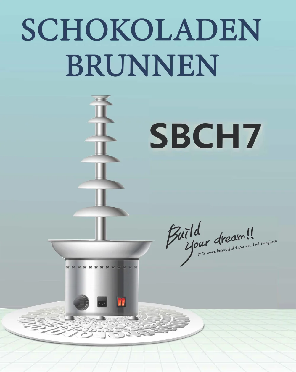 Willkommen zu einer neuen Dimension des Genusses! Unser exquisiter Schokoladenbrunnen mit sieben Etagen eröffnet eine Welt sinnlicher Gaumenfreuden und unwiderstehlicher Verlockungen. Gefertigt aus hochwertigem Edelstahl AISI 304 strahlt er nicht nur Eleganz aus, sondern garantiert auch Langlebigkeit und erstklassige Qualität.